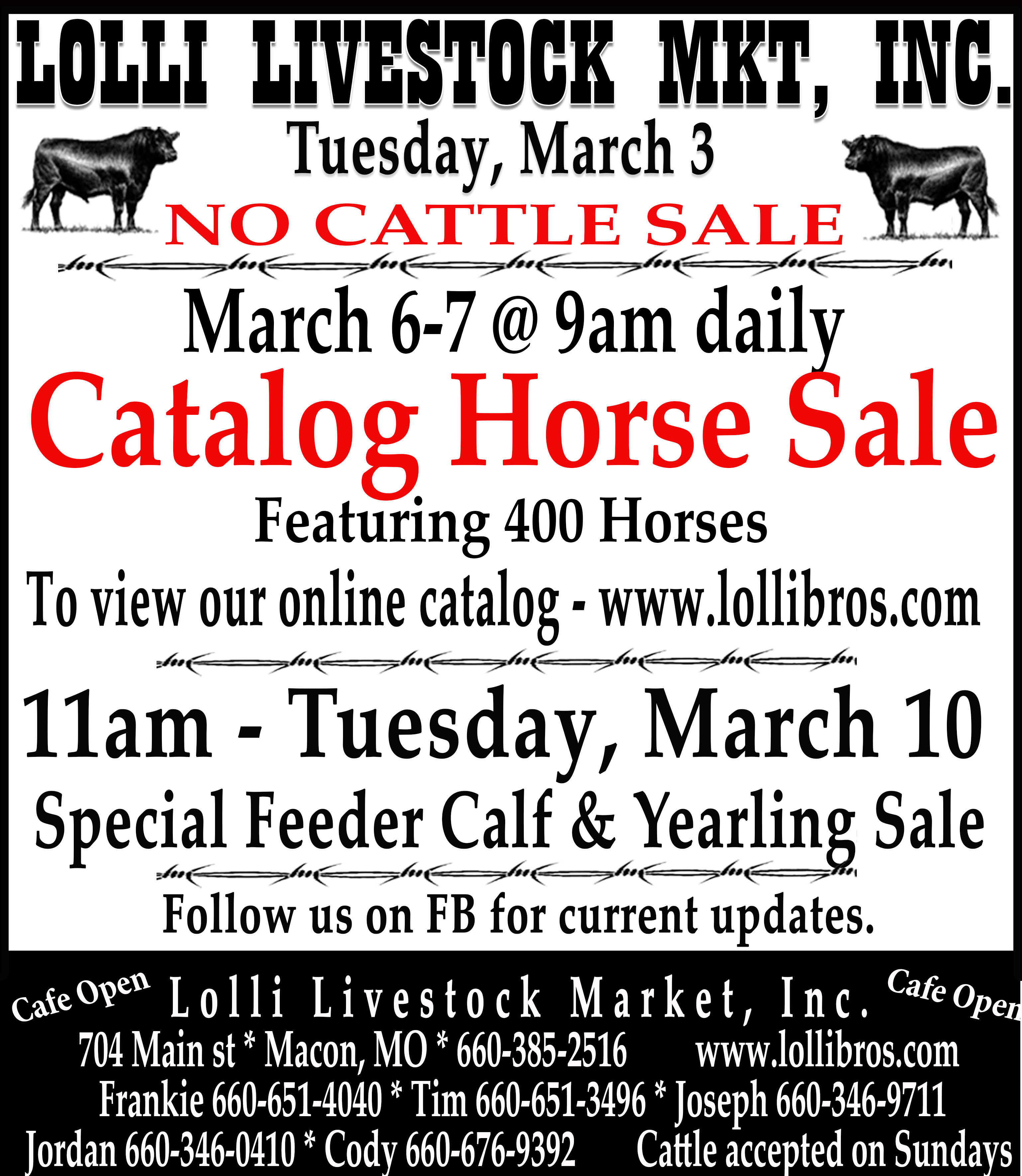 Cattle Sales held every Tues @ 11 am